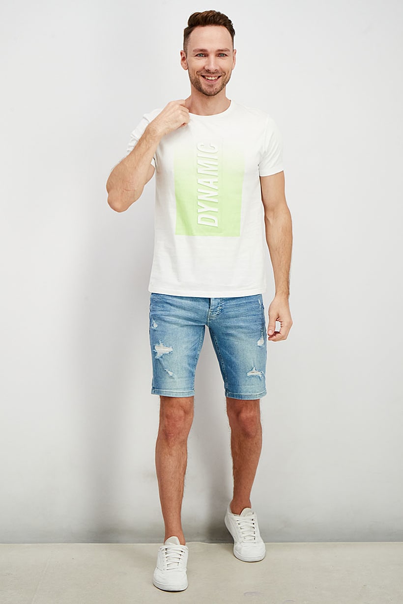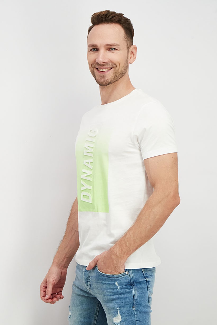 | nameOriginal | Men Crew Neck Embossed Short Sleeve T-shirt, White and Green Gecoko |