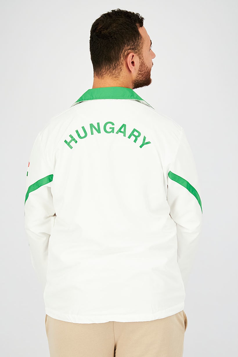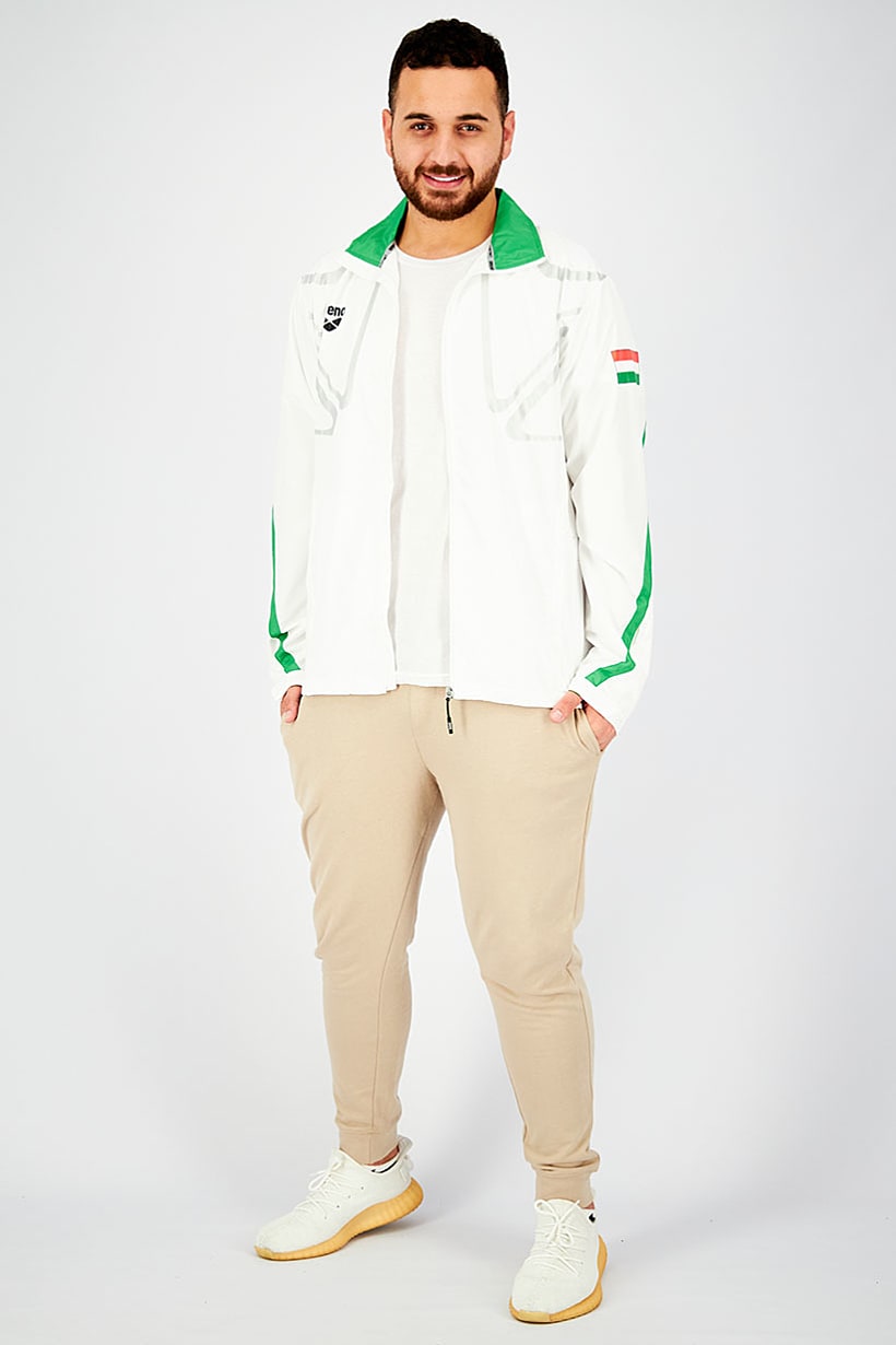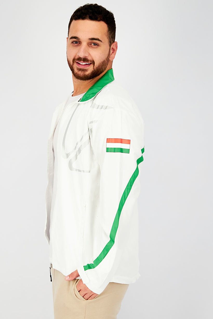 | sub_Categories | Men Clothing, Sportswear, men spread neckline long sleeve graphic brand jacket white and green |