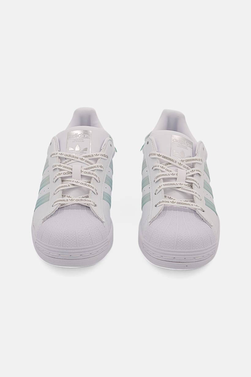 Women Lace Up Superstars Sport Shoes, White and Mint Green