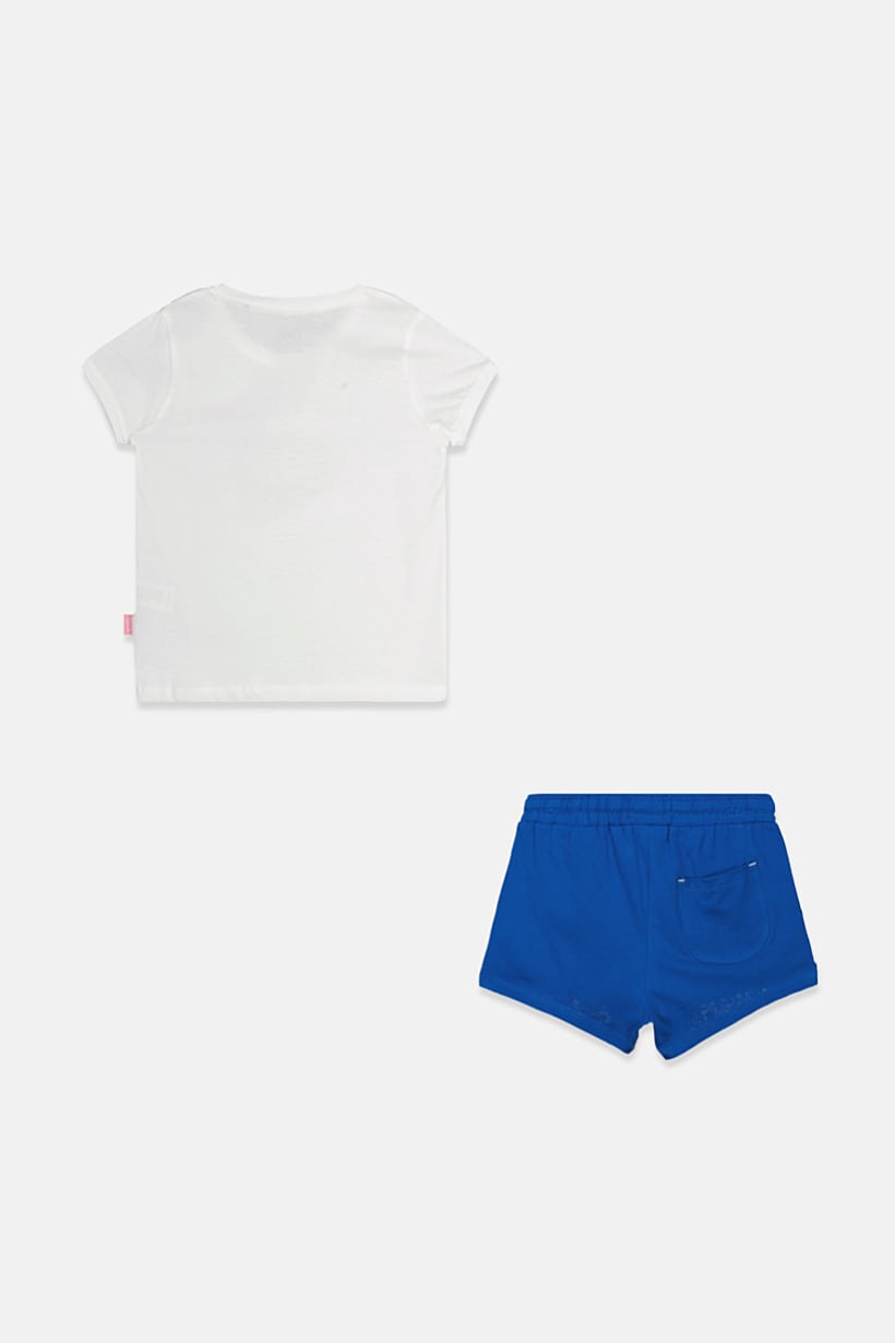 White and Navy Graphic Print Top and Shorts Set for Girls (2 Pieces)