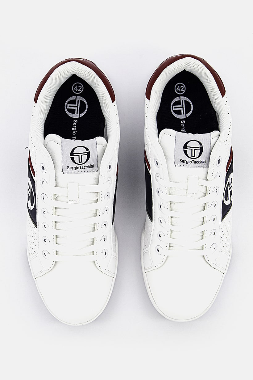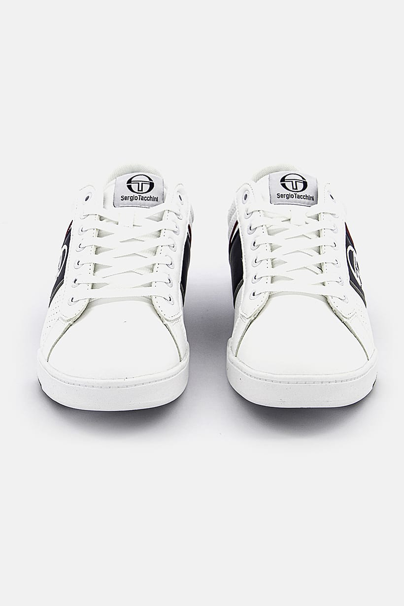 White and Navy Leather Casual Shoes for Men with Lace-Up Closure.