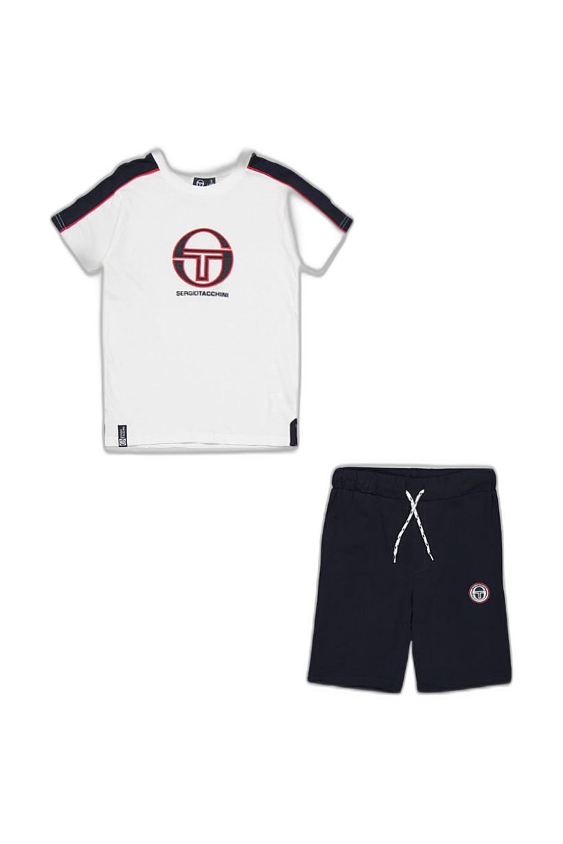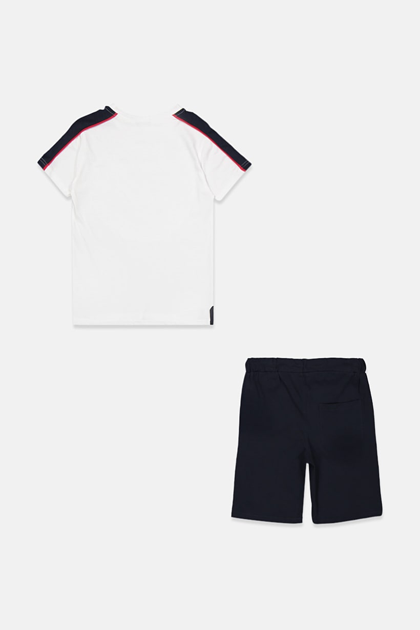 White and navy short set with crew neck tee for boys.