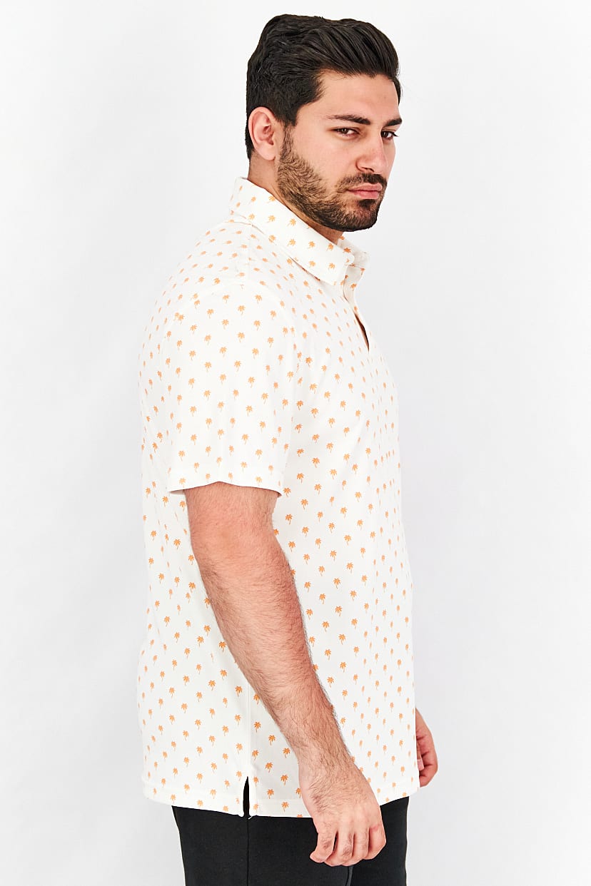 Men Sportswear Fit Short Sleeves Golf Polo Shirt, White/Orange