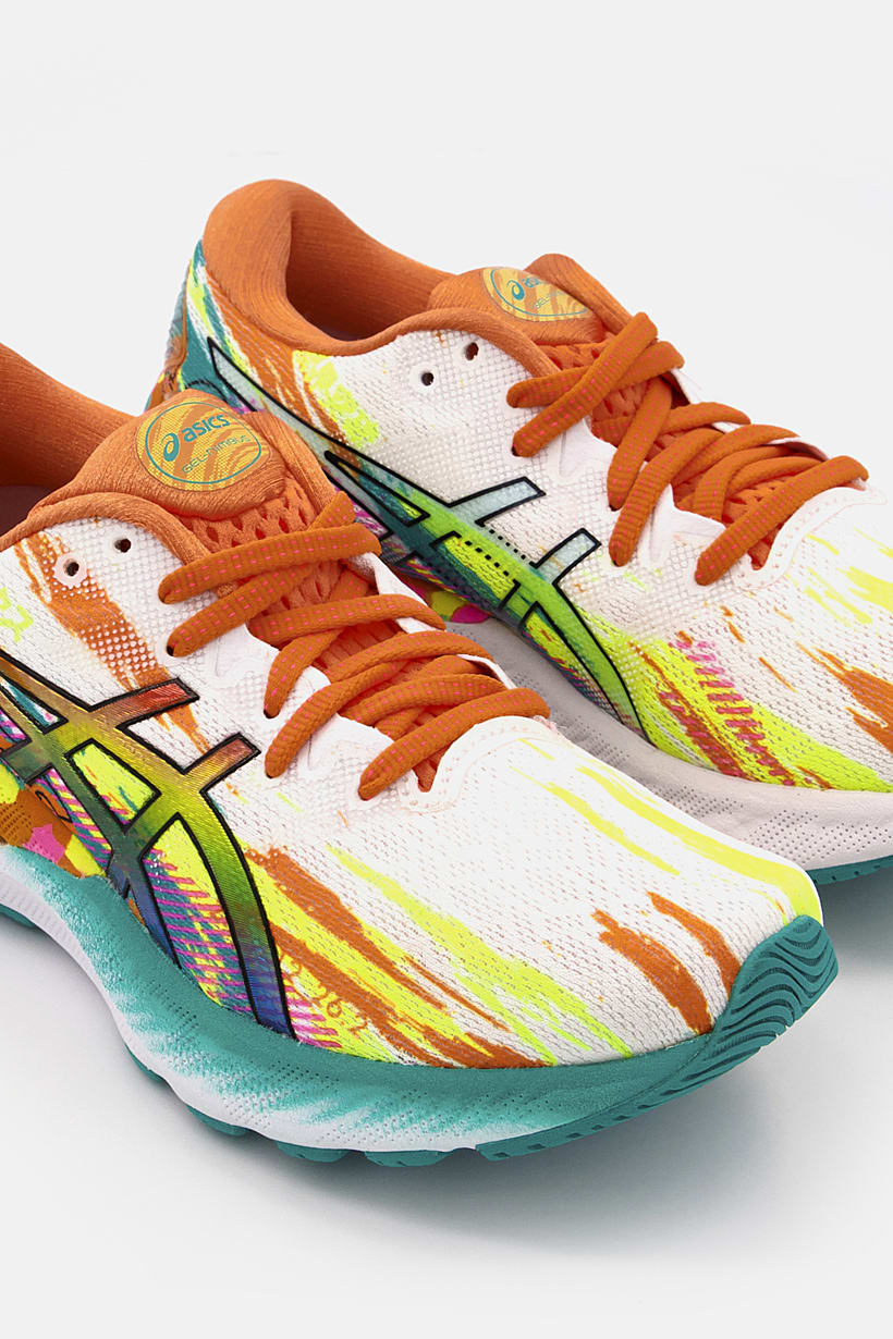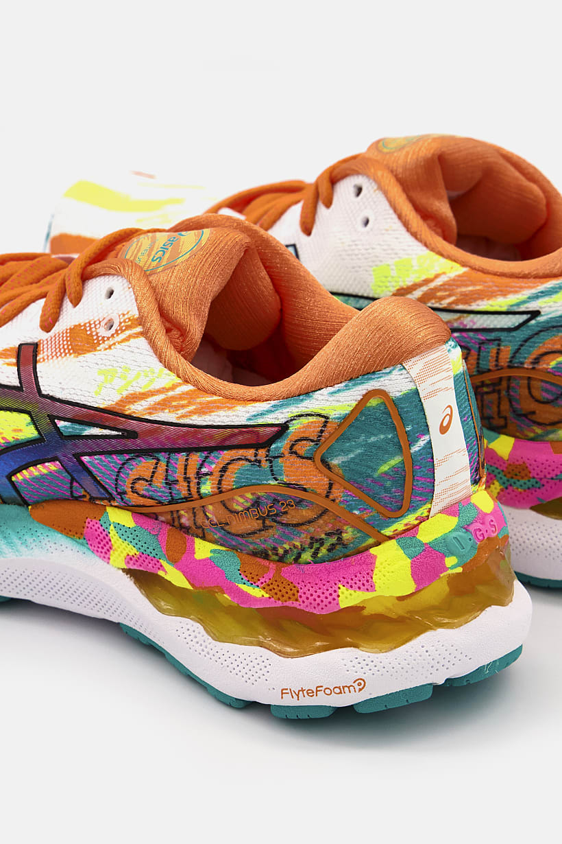 Shoes, Sports Shoes, women gel nimbus 23 lace up graphic sports shoes white orange combo
