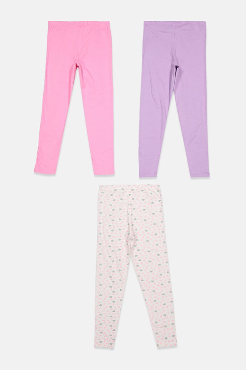 | sub_Categories | Girls Fashion, Girls Leggings & Tights, kids girl 3 pieces allover print pull on leggings white and pink combo |