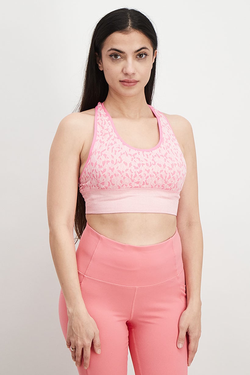 | descriptionOriginal | Care : Machine washable, Fit : Regular fit, Size shown : US, Thickness : Light, Type of Sport : Training, Disclaimer : Product color may slightly vary due to photographic lighting sources or your monitor settings., Fabrics : 67% Polyester, 29% Nylon, 4% Spandex, Pattern & Print : Plain/Solid, Sportswear Type : Sports Bra, Color Family : Pink, White, |