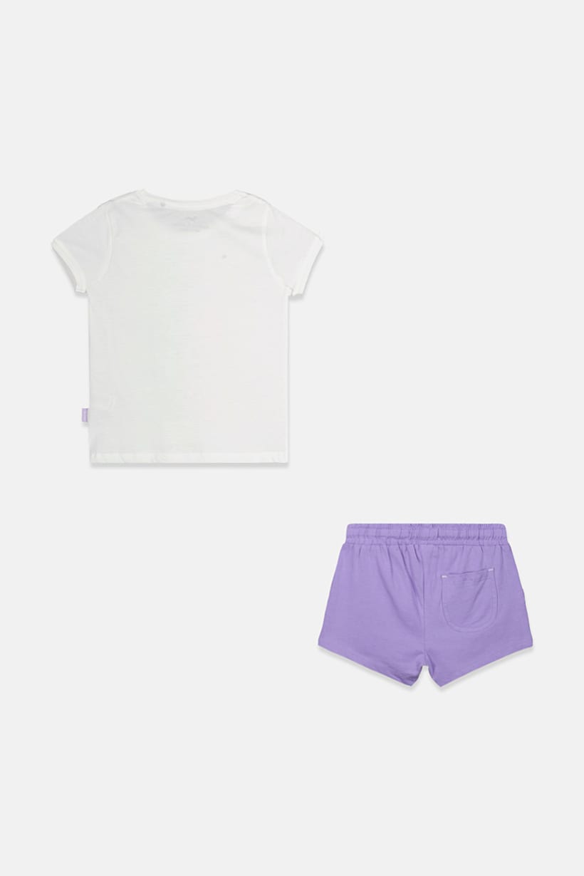 | nameOriginal | Kids Girl 2 Pc Graphic Print Top With Drawstring Short, White and Purple |