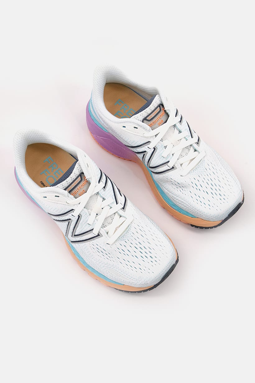 Women W860W12D Lace-Up Brand Logo Running Shoes, White/Purple Combo