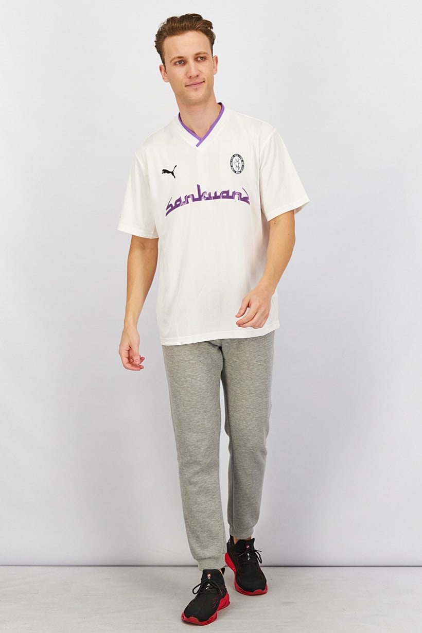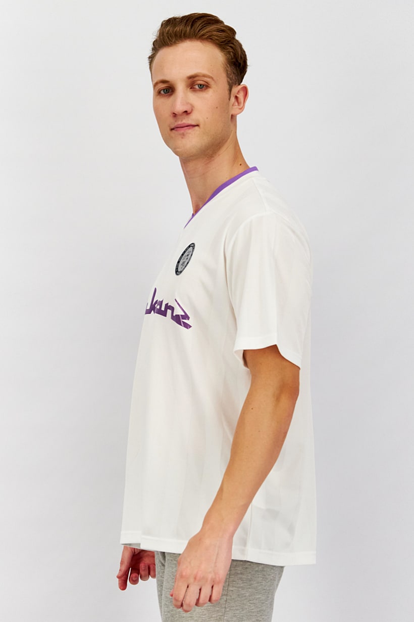 | nameOriginal | Men Sports Fit V-neck Graphic T-shirt, White and Purple |
