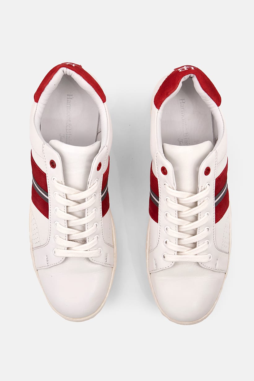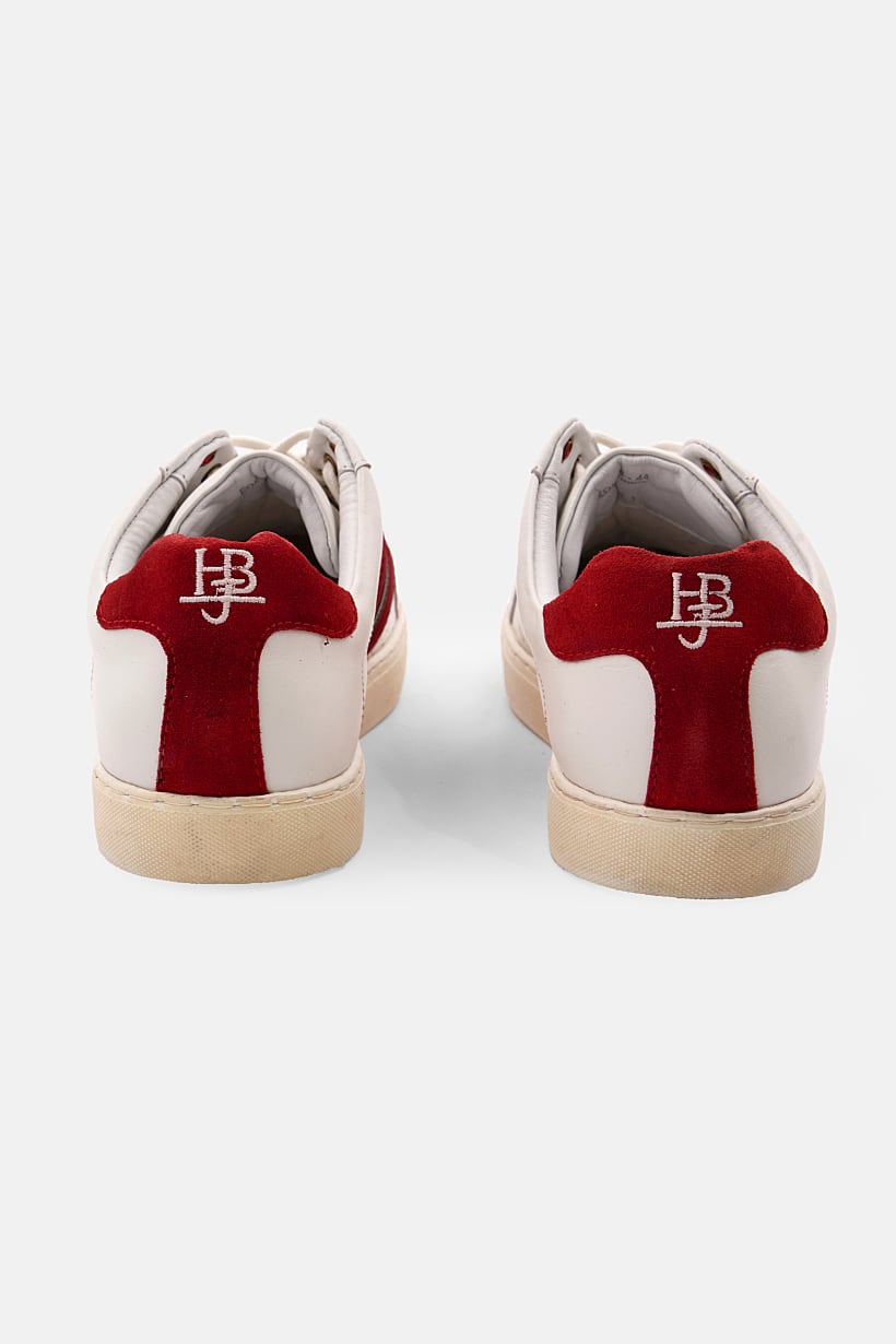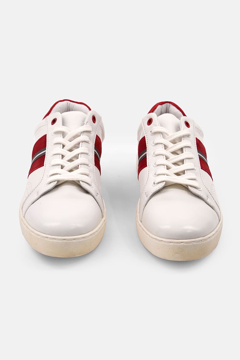 White and Red Men’s Sneakers with Branded Lace-Up.
