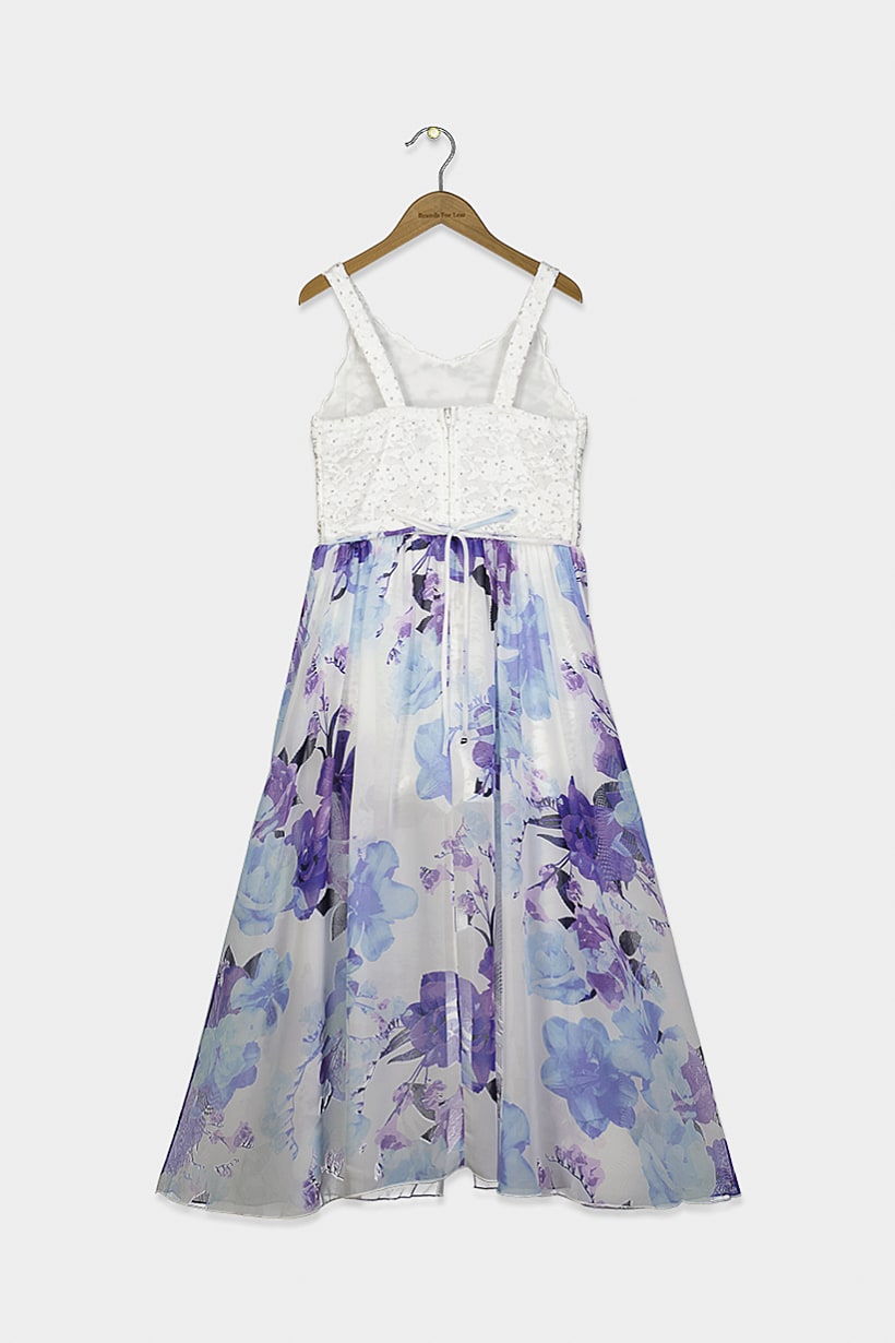 Kid Girls Sleeveless Floral Maxi Dress, White and Violet