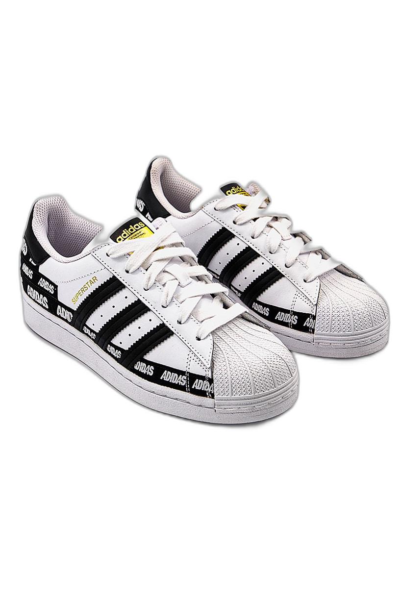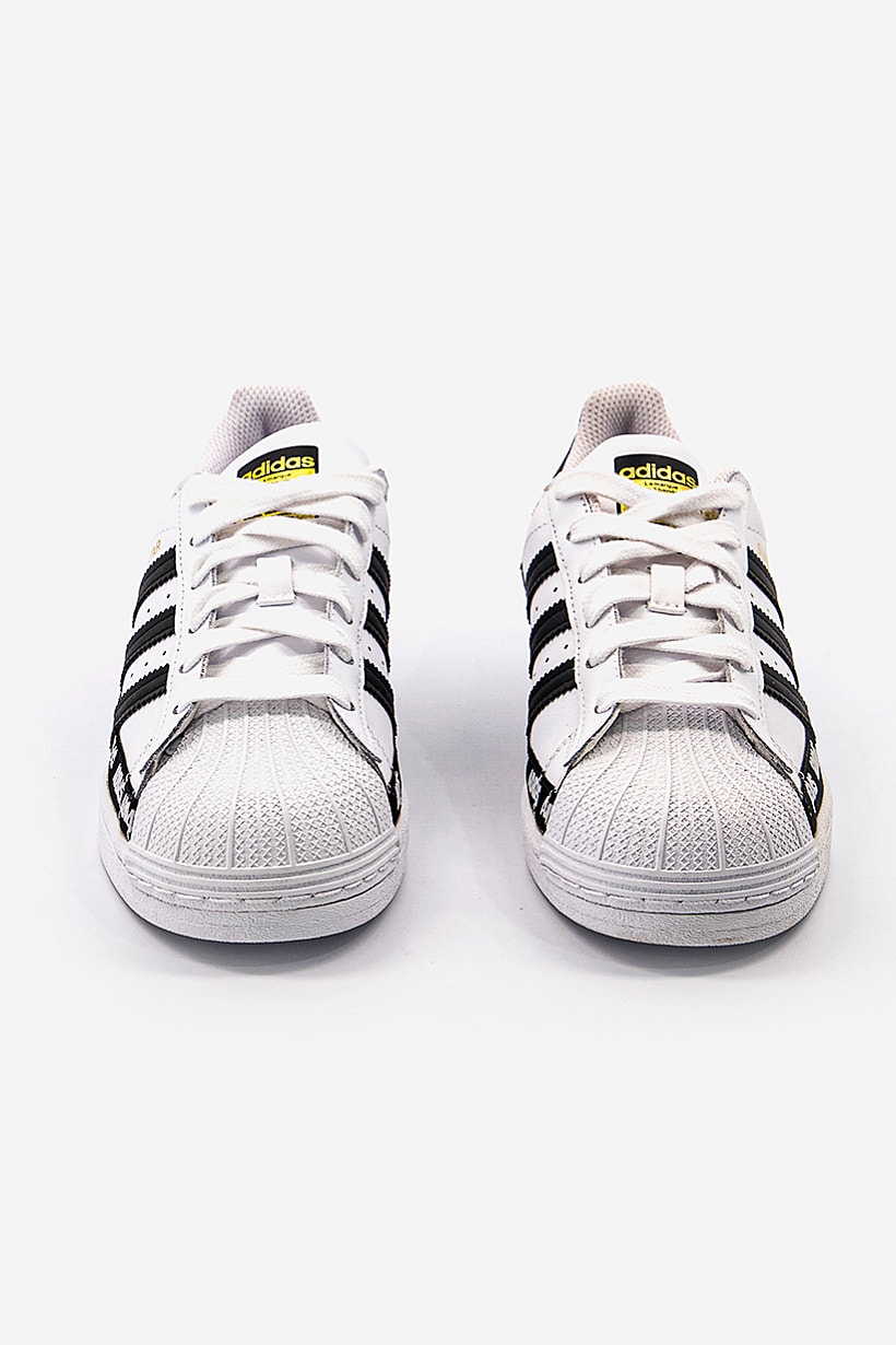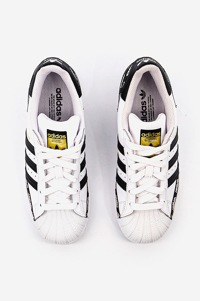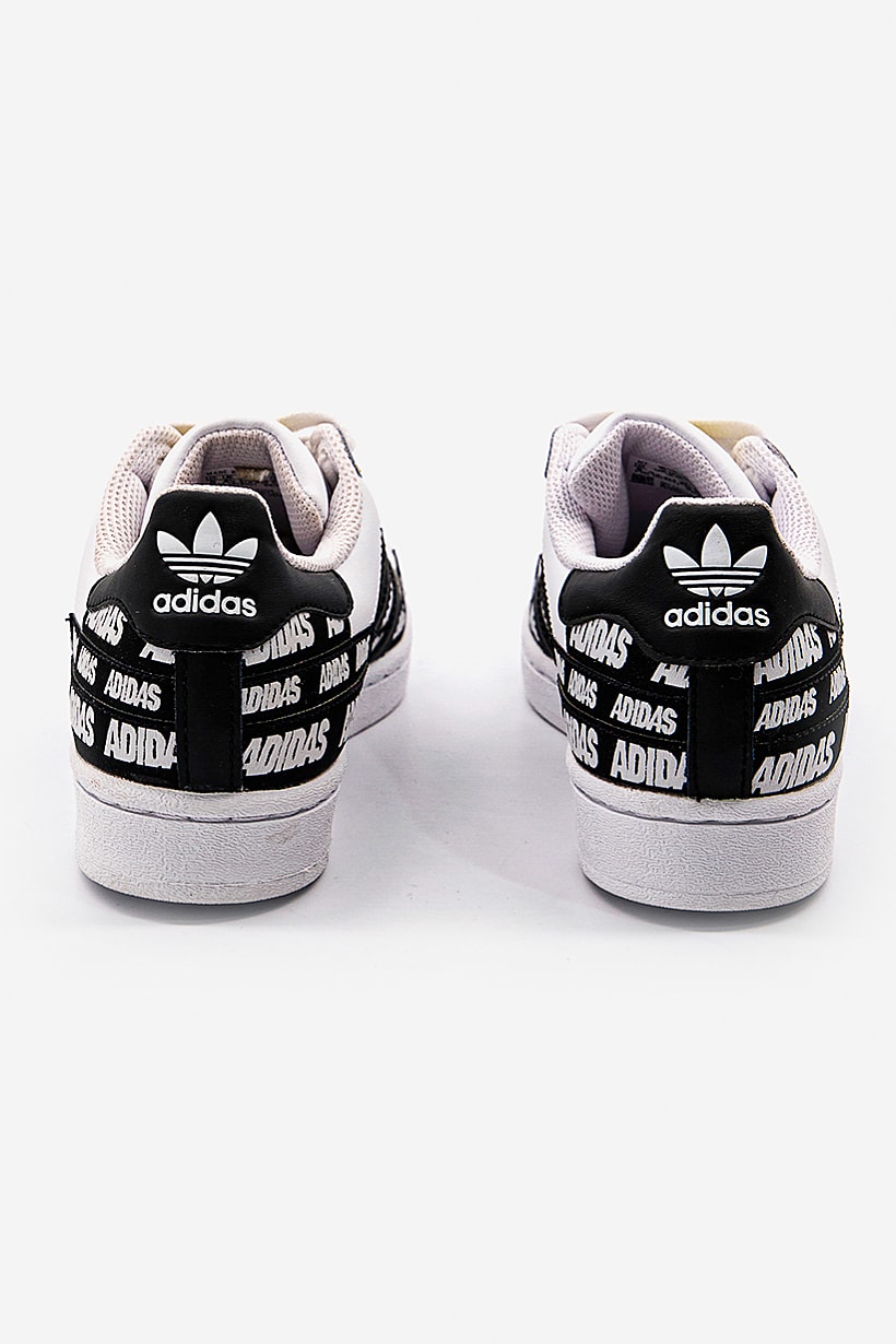 White, black, and gold lace-up shoes for boys – Superstar style.