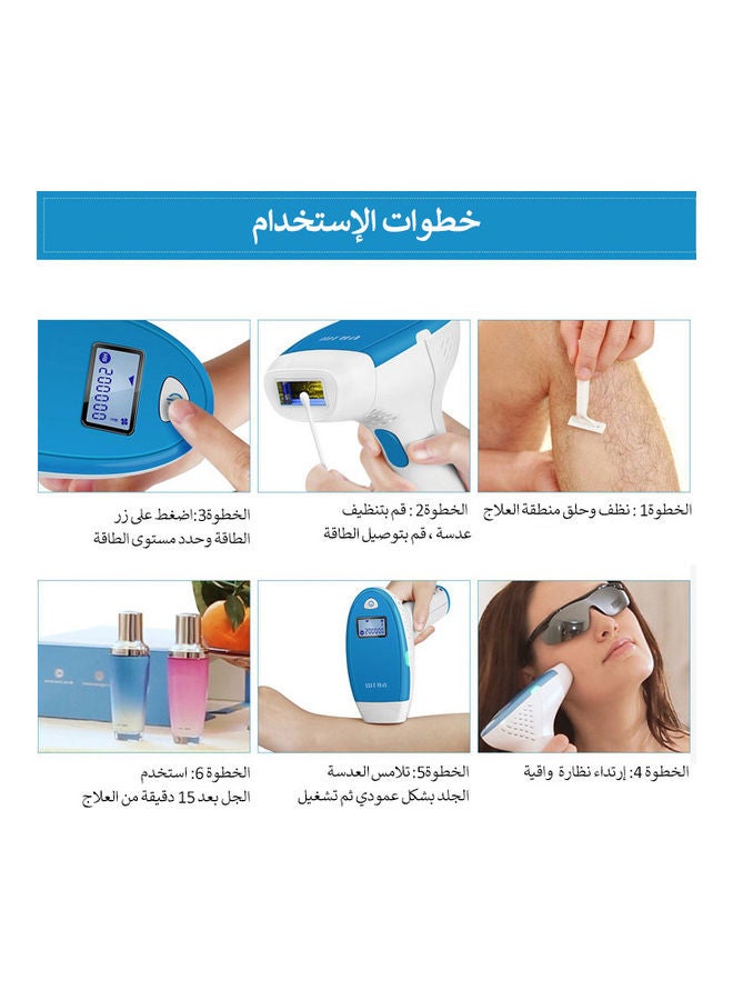 The IPL Laser Hair Removal Device in White/Blue is the perfect solution for those looking for a safe and effective way to remove unwanted hair from the comfort of their own home. This device uses Intense Pulsed Light (IPL) technology to target hair follicles and prevent regrowth, resulting in smooth and hair-free skin. The white and blue design is sleek and modern, making it a stylish addition to any bathroom or vanity. With adjustable intensity levels and a large treatment window, this device is suitable for use on all skin types and can be used on the face, arms, legs, and other areas of the body. Say goodbye to expensive salon treatments and hello to long-lasting hair removal with the IPL Laser Hair Removal Device in White/Blue.