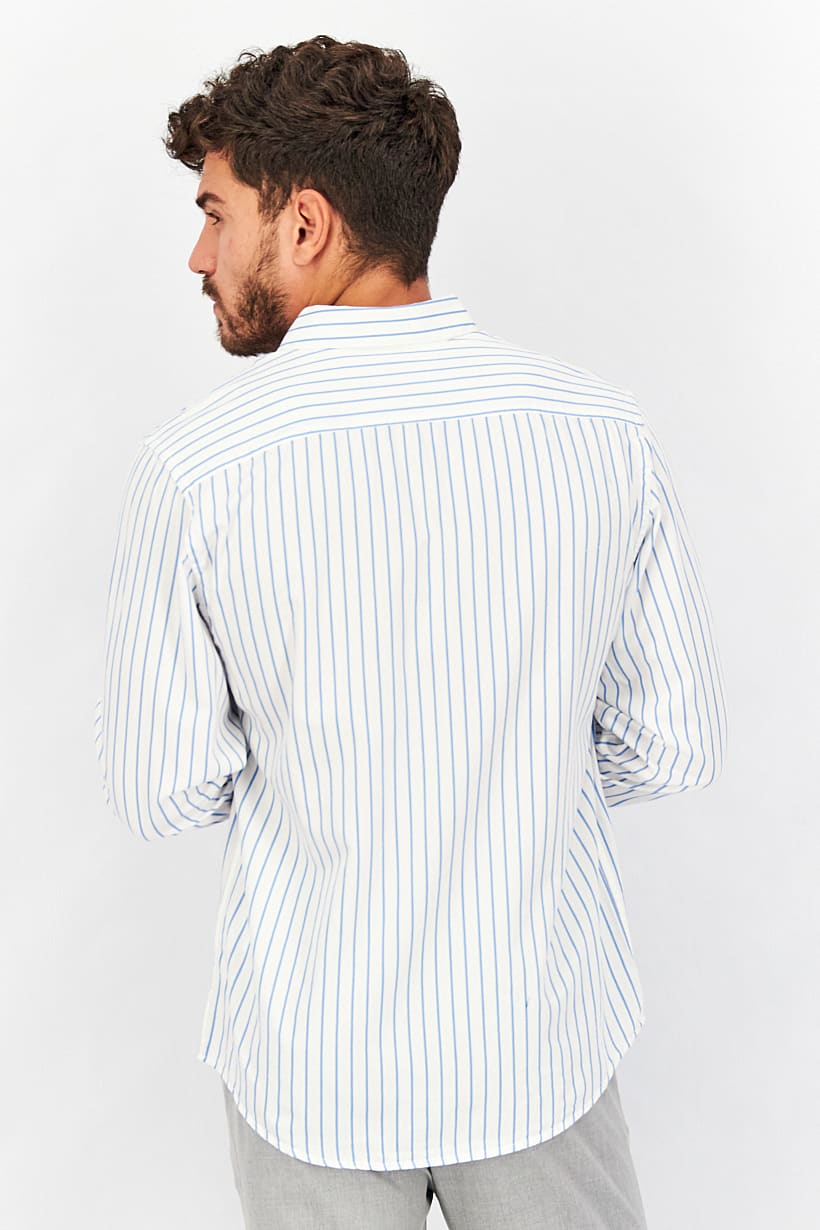 | descriptionOriginal | Care : Hand wash, Fit : Regular fit, Size shown : International, Sleeve Length : Long Sleeve, Types of Hem : Straight hem, Types of Neckline & Collar : Spread collar , Disclaimer : Product color may slightly vary due to photographic lighting sources or your monitor settings., Fabrics : 100% Cotton, Occasion : Casual, Pattern & Print : Stripe, Types of Closures : Button, Color Family : White, Blue, |