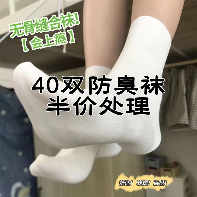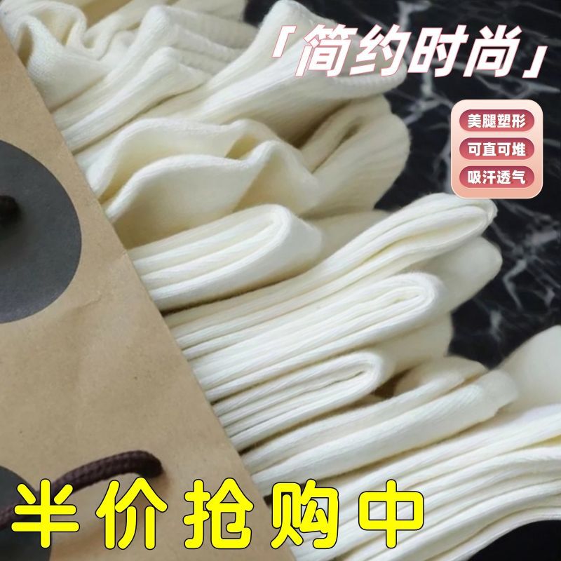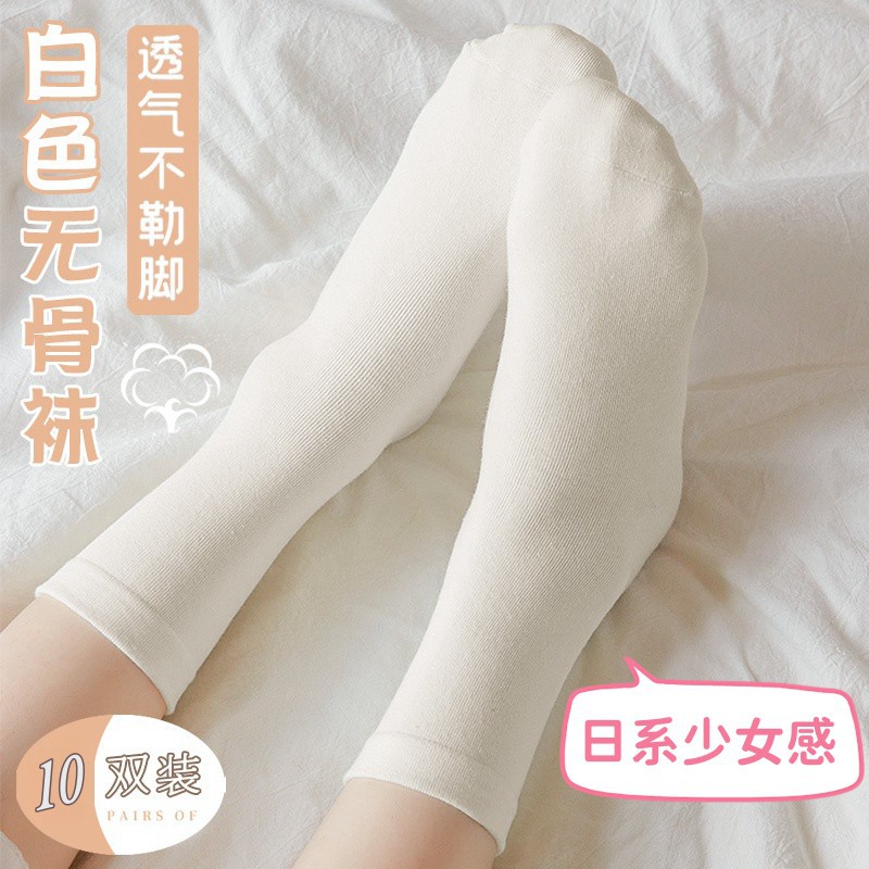 White Boneless Stacking Socks Children’s Mid-barrel Ins Trendy Spring and Autumn Four Seasons Japanese All-match Sweat Absorbing Breathable Moon Socks