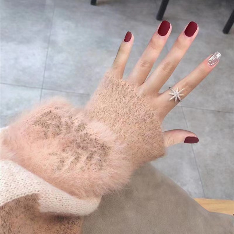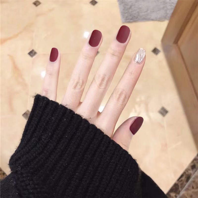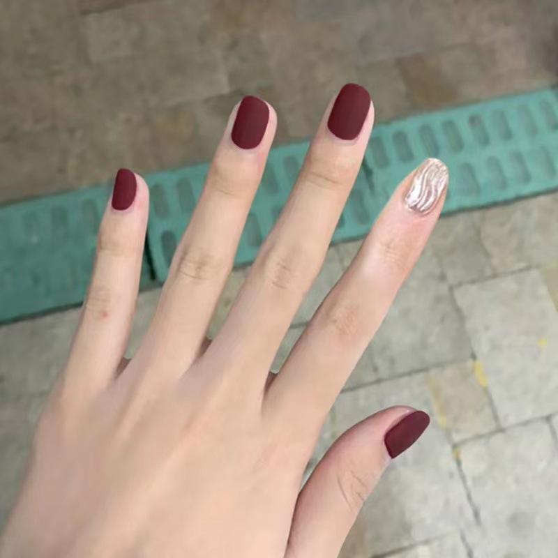 White Bride Photo Red Frosted Water Ripple Short Wearable Nail Art Finished Nail Art