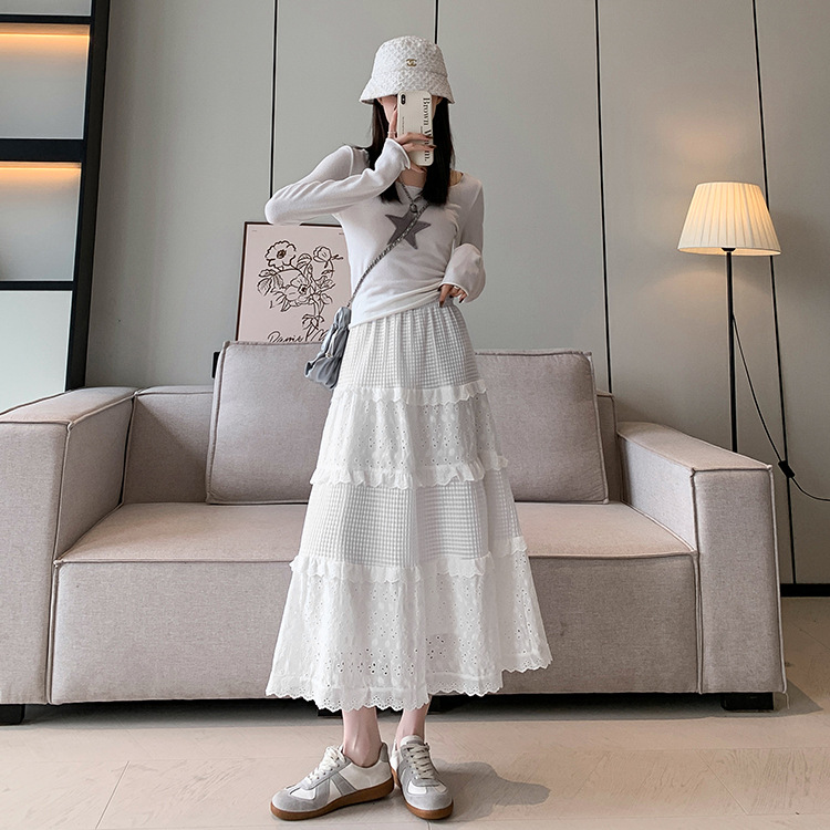| nameOriginal | White cake skirt for women spring and summer new style skirt gentle style small mid-length skirt high waist elegant skirt |