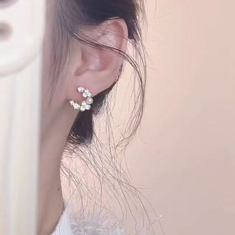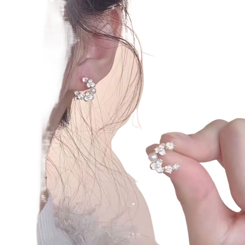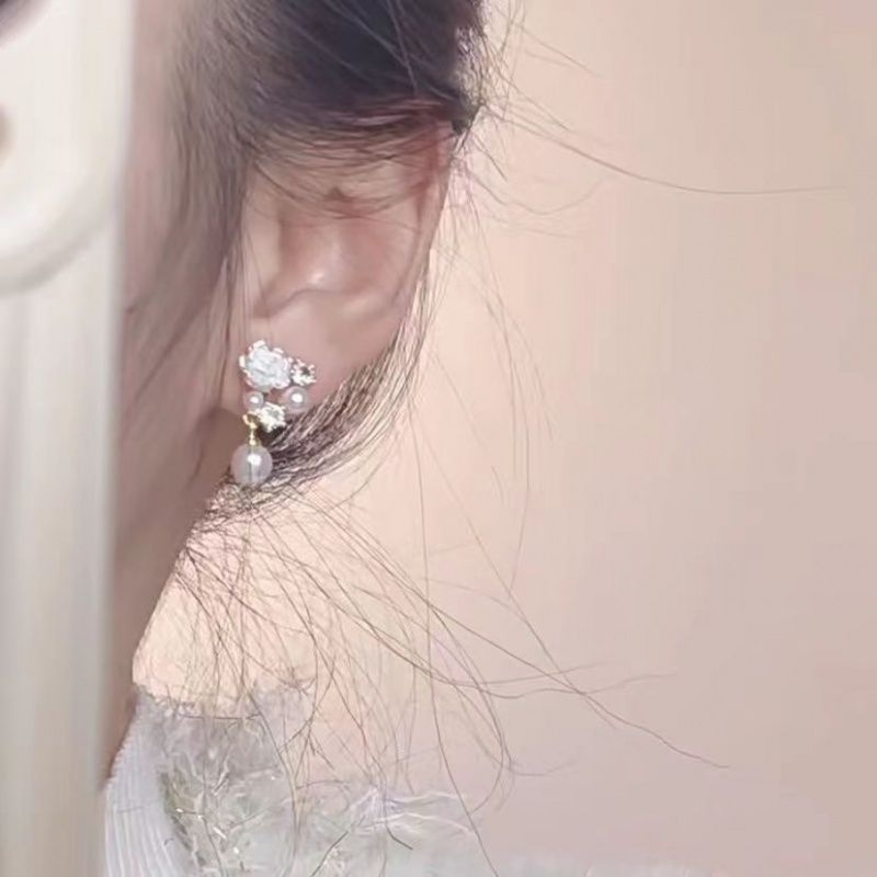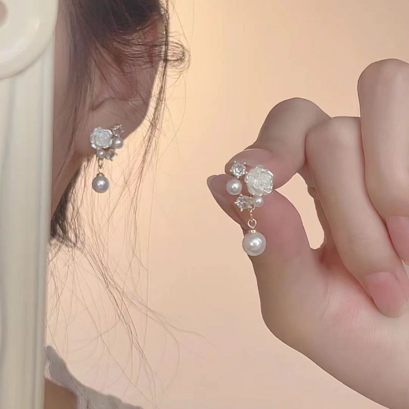 White Camellia Ear Studs French Ear Holes Earrings Xiangfeng Pearl Zircon New Style Small Elegant Earrings High-end