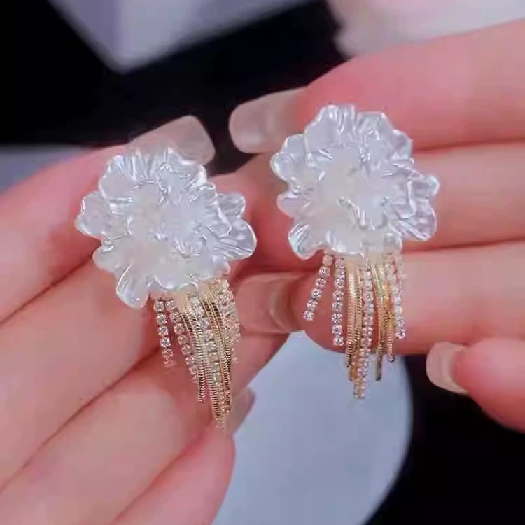 | nameOriginal | White camellia earrings are elegant, sparkling diamond tassel earrings, high-end niche, exquisite flower silver needle earrings |