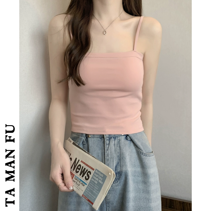 | nameOriginal | White camisole women's inner wear with breast pads summer thin outer wear one-line tube top beautiful back bottoming short top |