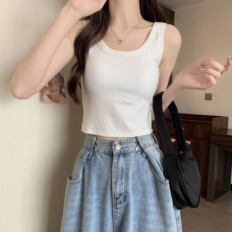 | nameOriginal | White Camisole Women's Slim-fit Slimming Short Inner Base Shirt Summer Trendy Outer Wear Sports Top with Chest Pad |