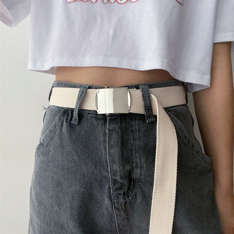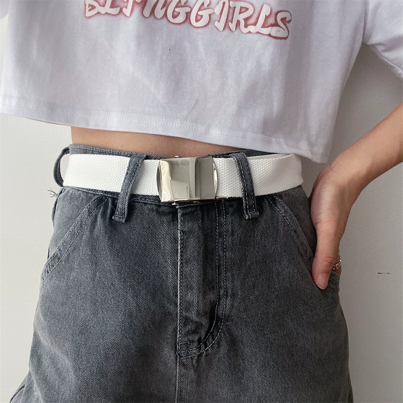 | nameOriginal | White canvas women's ins style summer non-hole smooth buckle |
