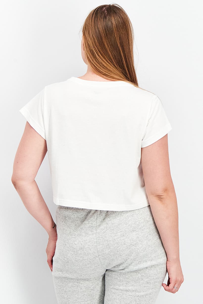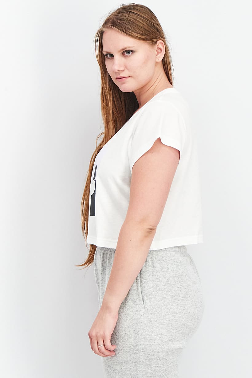 | descriptionOriginal | Care : Machine washable, Fit : Sportswear Fit, Ideal For : Women, Padding : No, Size shown : US, Sleeve Length : Short Sleeve, Thickness : Light, Type of Sport : Training, Types of Hem : Straight hem, Types of Neckline & Collar : Crew neckline, Types of Sleeve : Cap sleeve, Disclaimer : Product color may slightly vary due to photographic lighting sources or your monitor settings., Fabrics : 60% Cotton, 40% Polyester, Occasion : Sport, Pattern & Print : Brand Logo, Sportswear Type : Tops, Types of Closures : Pullover, Color Family : White, |