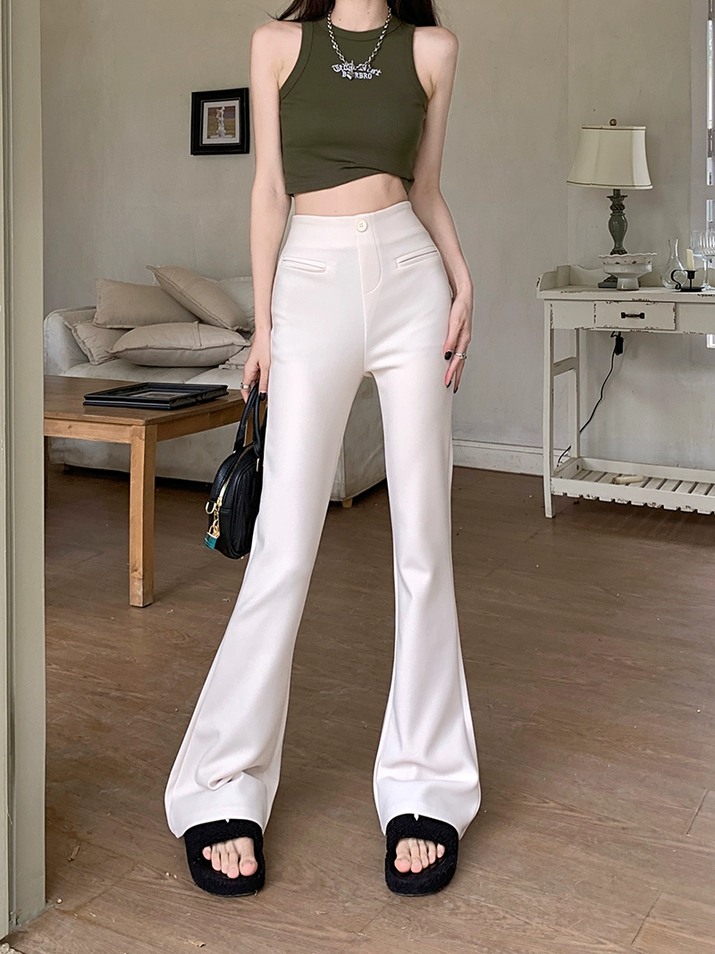 | nameOriginal | White casual high-waisted floor-length trousers slightly flared |