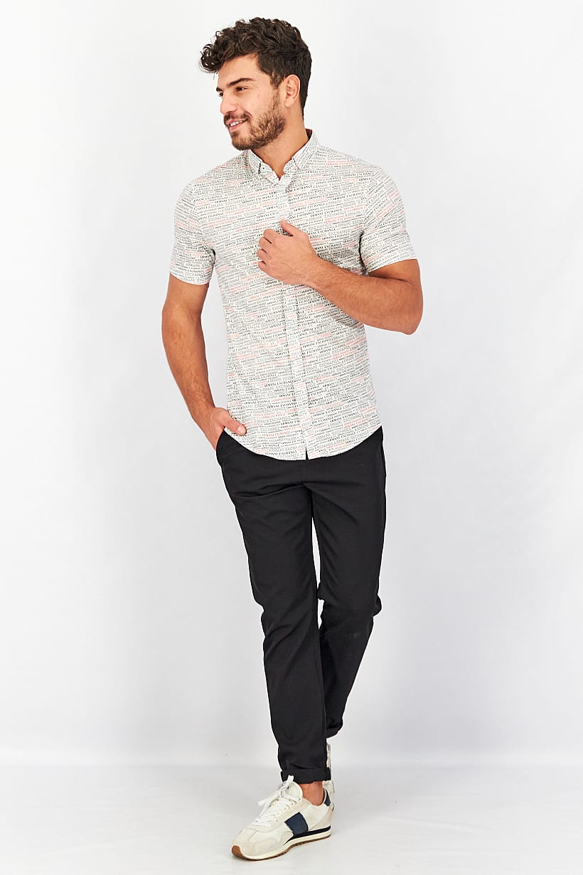 | nameOriginal | Men Slim Fit Allover Print Short Sleeves Casual Shirt, White |