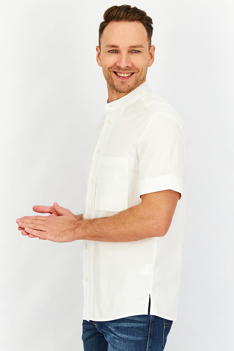 | nameOriginal | Men Regular Fit Plain Short Sleeve Casual Shirt, Bright White |