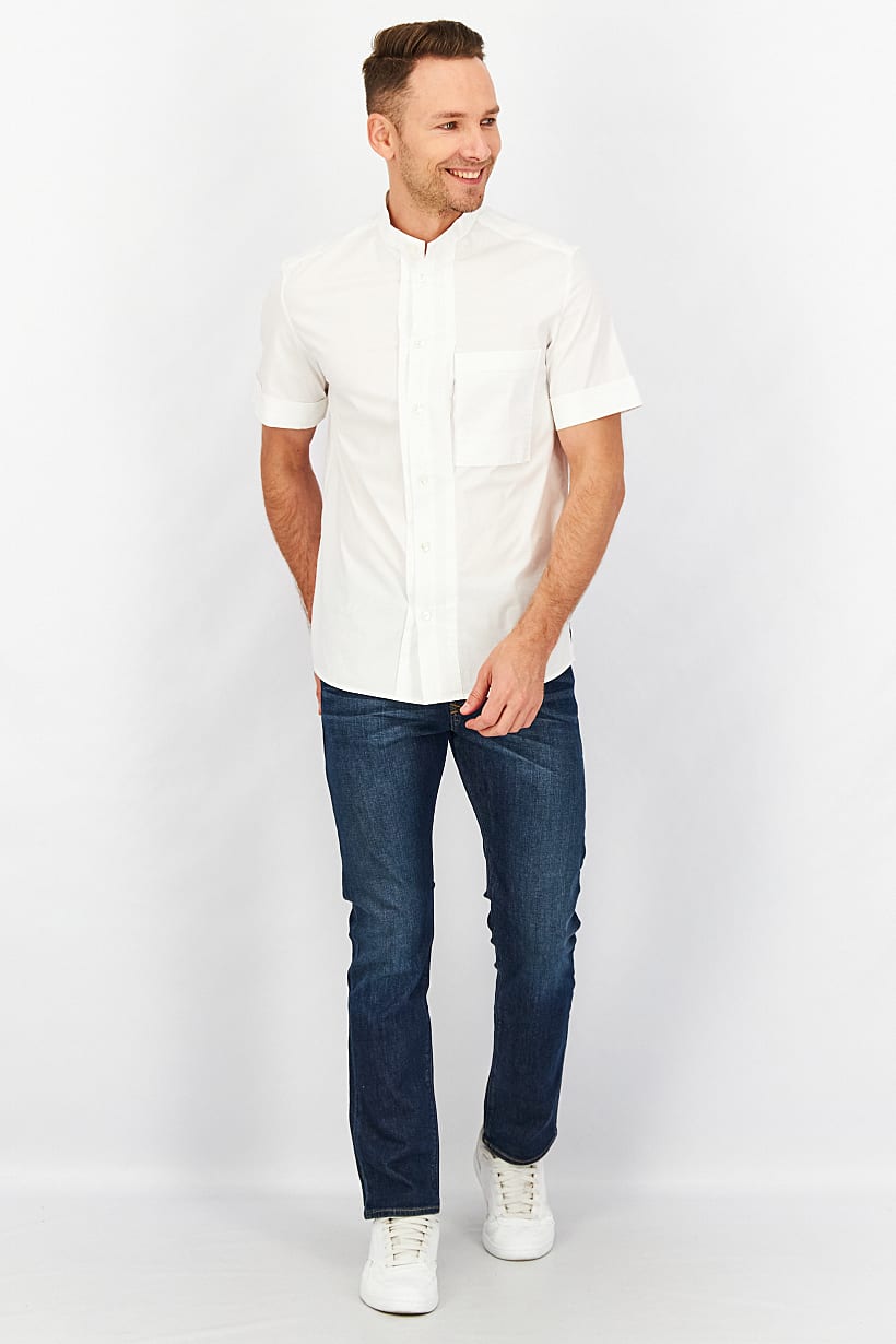 | descriptionOriginal | Care : Hand wash, Fit : Regular fit, Size shown : International, Sleeve Length : Short Sleeve, Disclaimer : Product color may slightly vary due to photographic lighting sources or your monitor settings., Fabrics : 97% Cotton, 3% Elastane, Occasion : Casual, Pattern & Print : Plain/Solid, Types of Closures : Button, Color Family : White, Types of Hem : Side gusset, Types of Neckline & Collar : Band collar, |