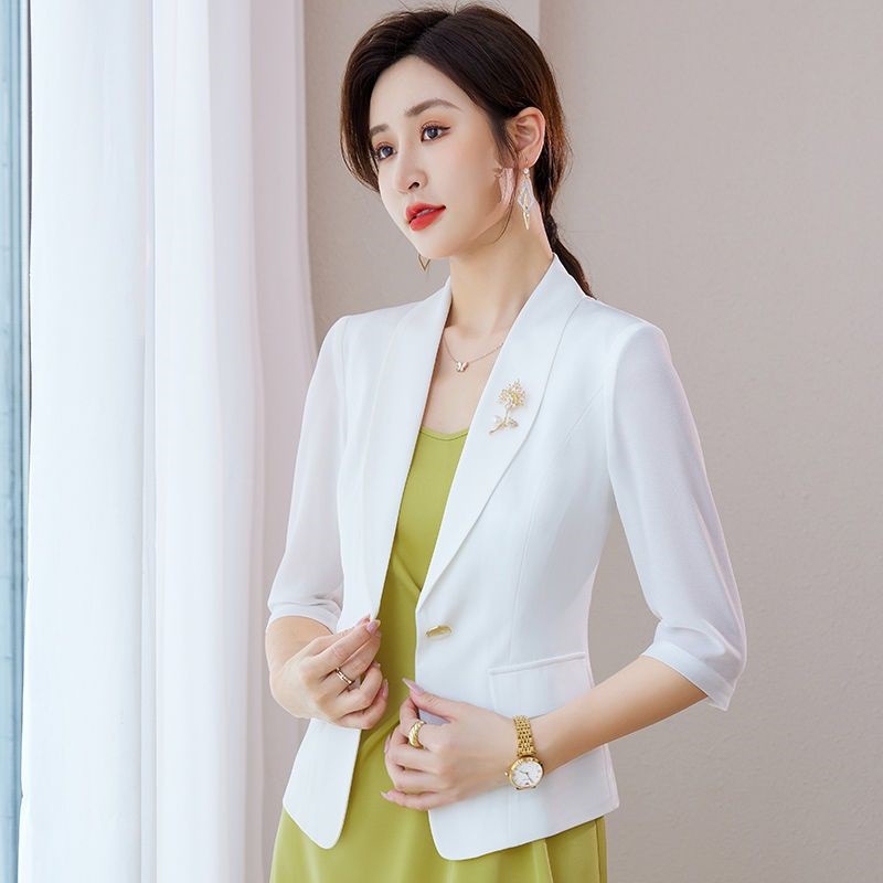 | nameOriginal | White Chiffon Casual Suit Jacket Women's Summer Thin Small 2022 New Short Small Suit suit |