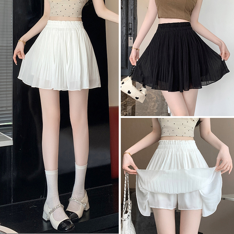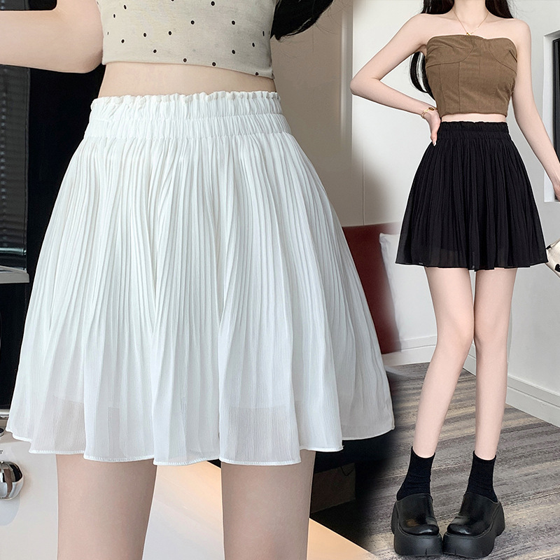 | nameOriginal | White Chiffon Pleated Skirt Women's Summer New Style Small Casual High Waist Slimming Anti-glare A- line Skirt |