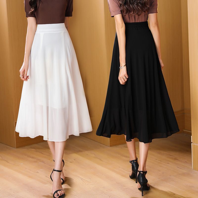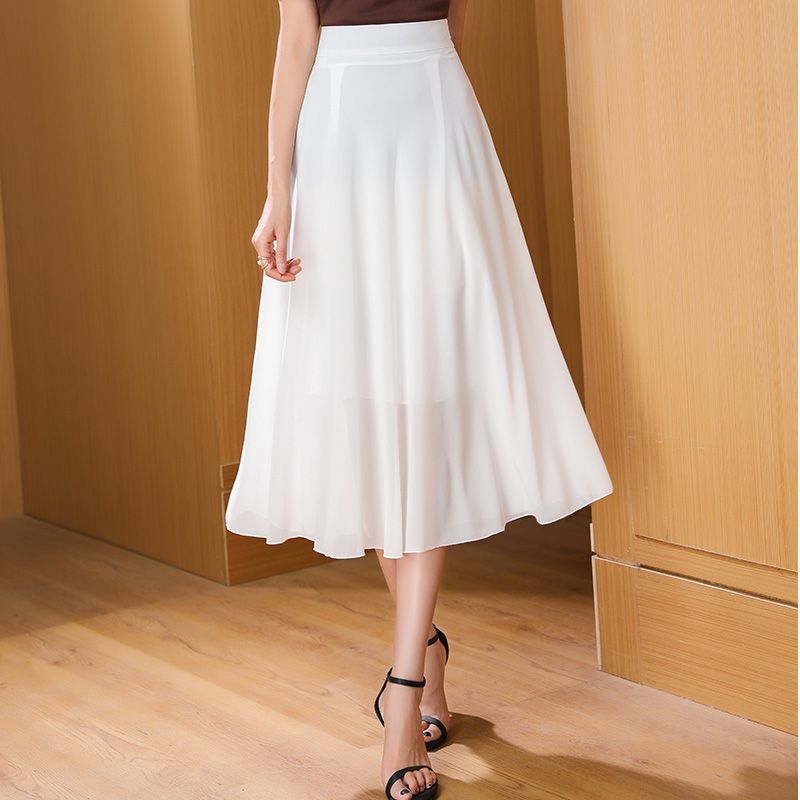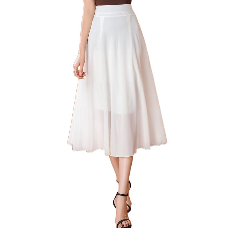 | nameOriginal | White Chiffon Skirt Women's Mid-length 2024 Summer New Large Swing Skirt Slimming plus size Small A- line Skirt |