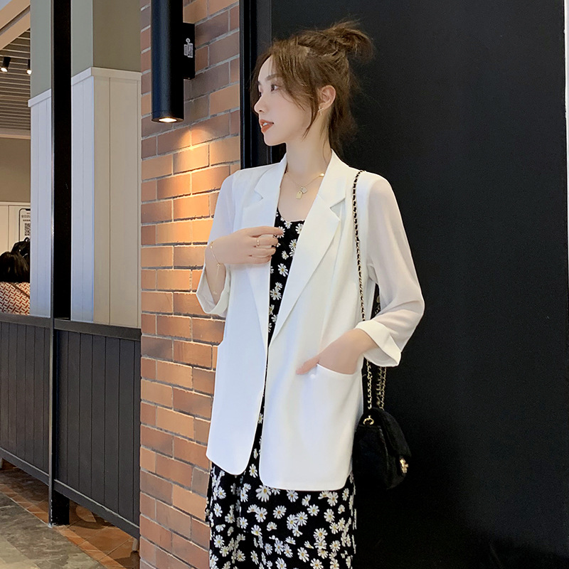 White Chiffon Small Suit Jacket Women’s Thin Summer Design Niche 2023 New Suit Top Sunscreen