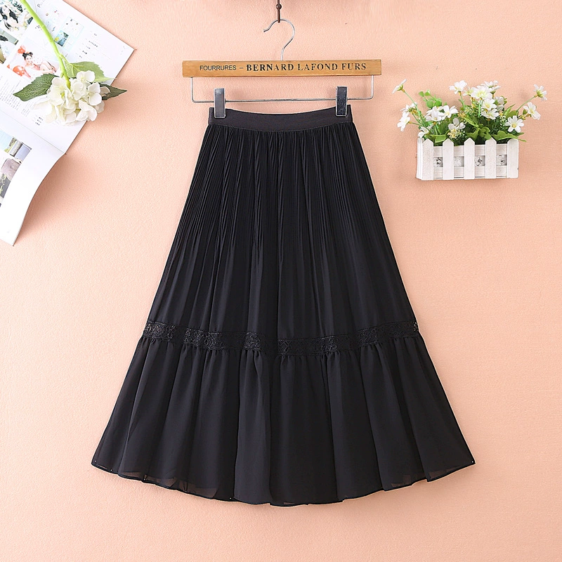 White chiffon female Xia Da Bai A -line long and half -body skirt