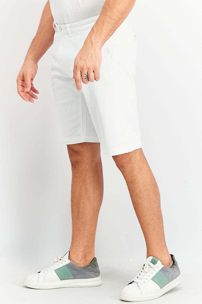 Men Regular Fit Solid Tulip Hem Chino Short, White