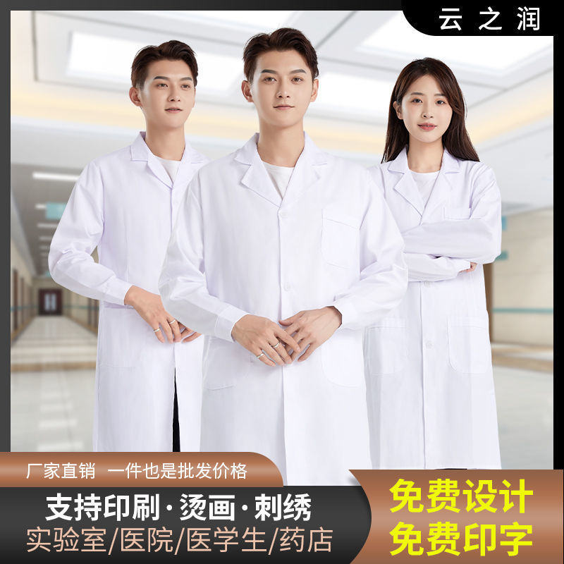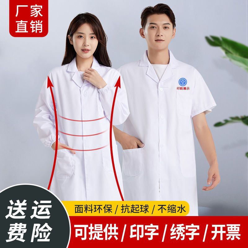 White coat lab coat student long sleeve doctor intern chemical lab coat female nurse male overalls consignment hot
