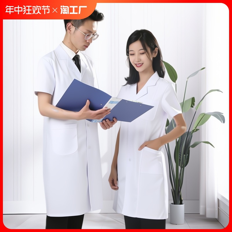 White coat men's long-sleeved doctor's clothing nurse's clothing work clothes short-sleeved medical student laboratory chemistry lab coat beauty