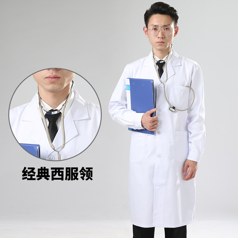 White coat men’s long-sleeved doctor’s clothing nurse’s clothing work clothes short-sleeved medical student laboratory chemistry lab coat beauty