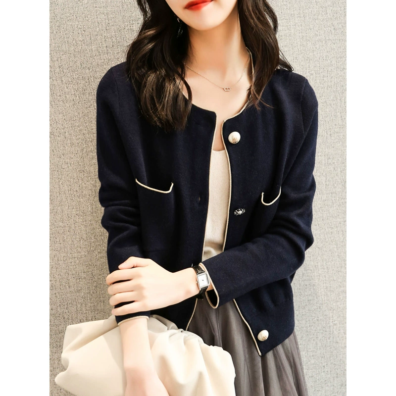 White -collar brother’s new pearl diamond buckle wool knitted cardigan
