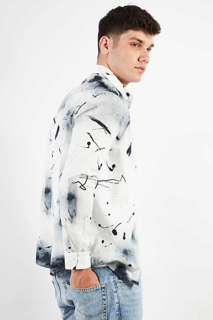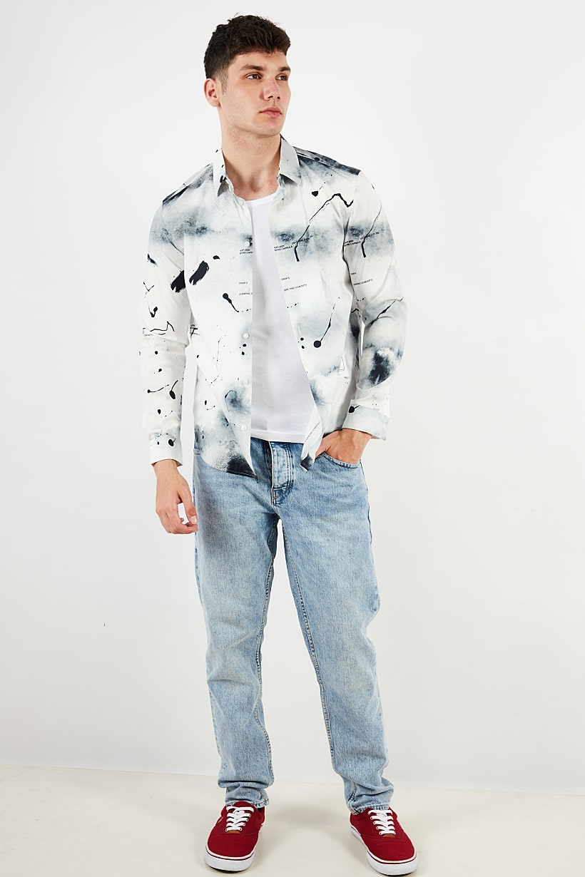 | nameOriginal | Men Regular Fit Splatter Paint Long Sleeves Casual Shirt, White Combo |