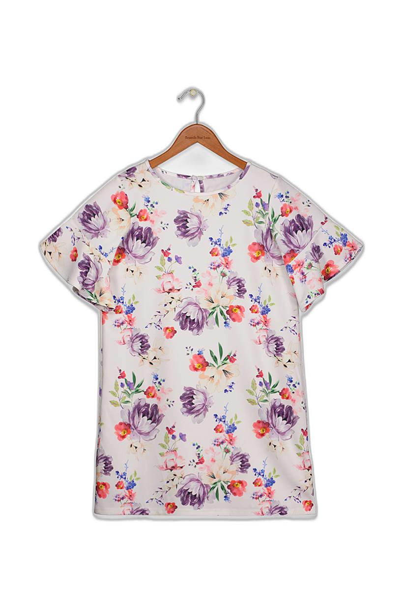 Care : Machine washable, Ideal For : Girls, Sleeve Length : Short Sleeve, Types of Hem : Straight hem, Types of Neckline & Collar : Round neckline, Types of Sleeve : Short sleeve, Disclaimer : Product color may slightly vary due to photographic lighting sources or your monitor settings., Fabrics : 96% Polyester, 4% Elastane, Occasion : Casual, Pattern & Print : Floral pattern, Types of Closures : Pullover, Color Family : White,