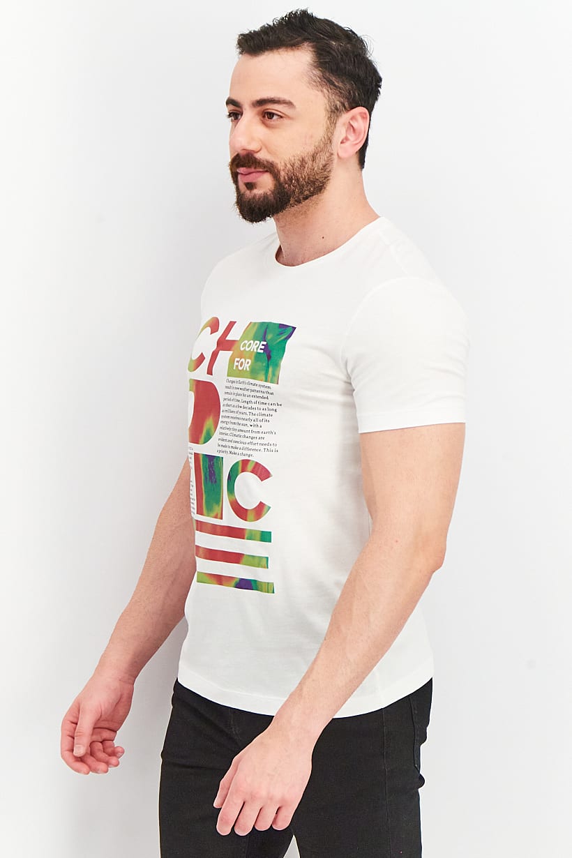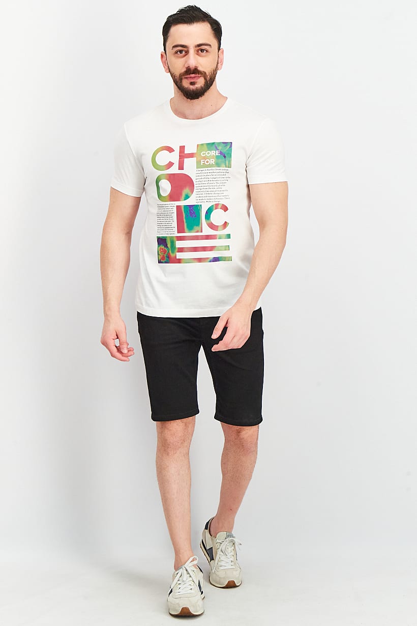 Men Regular Fit Short Sleeve Graphic Print T-Shirt, White Combo
