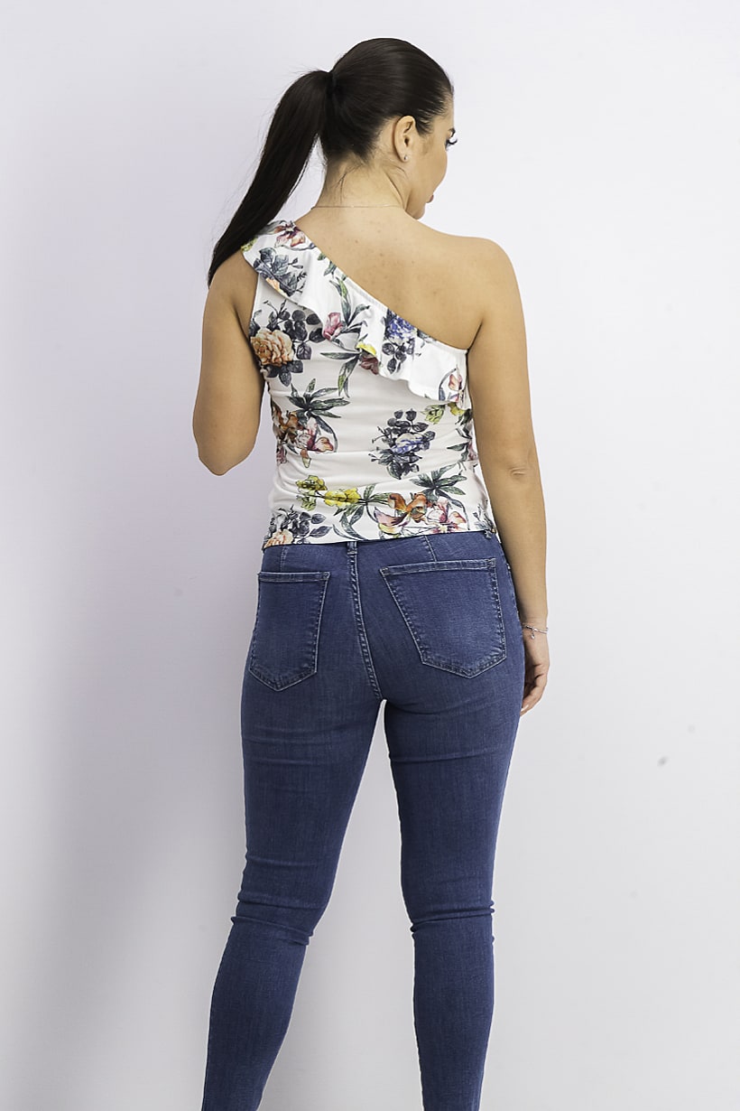 Types of Sleeve : One shoulder sleeve, Top Style : Blouse, Ideal For : Women, Occasion : Casual, Fabrics : 4% Spandex, 96% Polyester, Care : Machine washable, Pattern & Print : Allover print, Floral Print, Types of Hem : Straight hem, Types of Closures : Pullover, Types of Neckline & Collar : Asymmetrical neckline, Color Family : Green, White, Size shown : International,