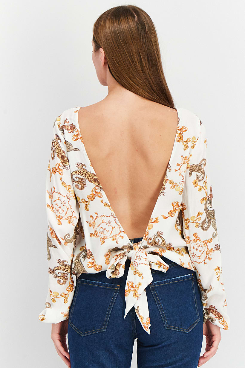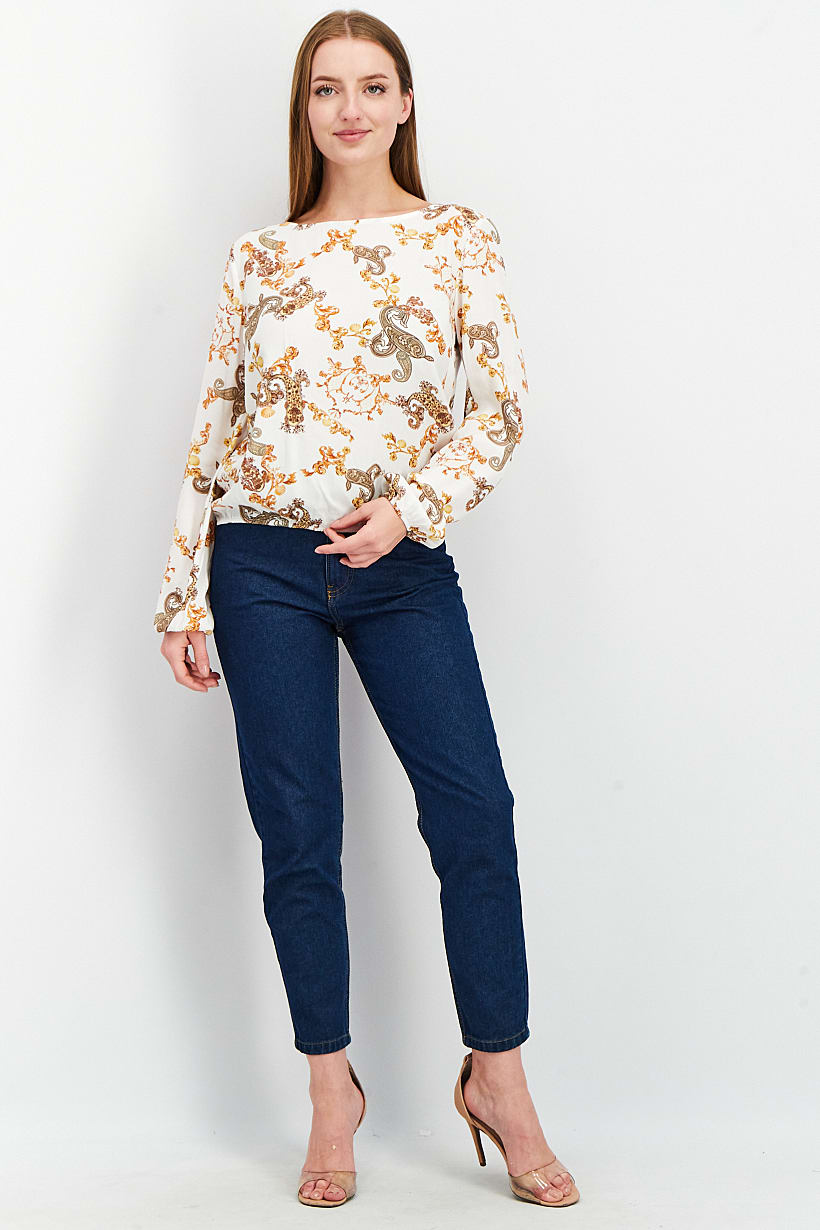 | nameOriginal | Women Round Neck Long Sleeves Paisley Pattern Blouse, White Combo |