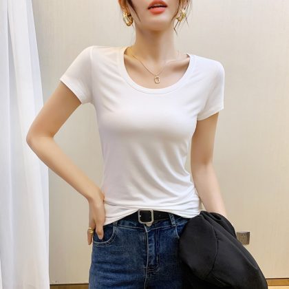 | nameOriginal | White Crewneck Short-sleeved T-shirt Women's Cotton Modal 2024 Summer New Korean Style Slim-fit Slimming Inner Top |