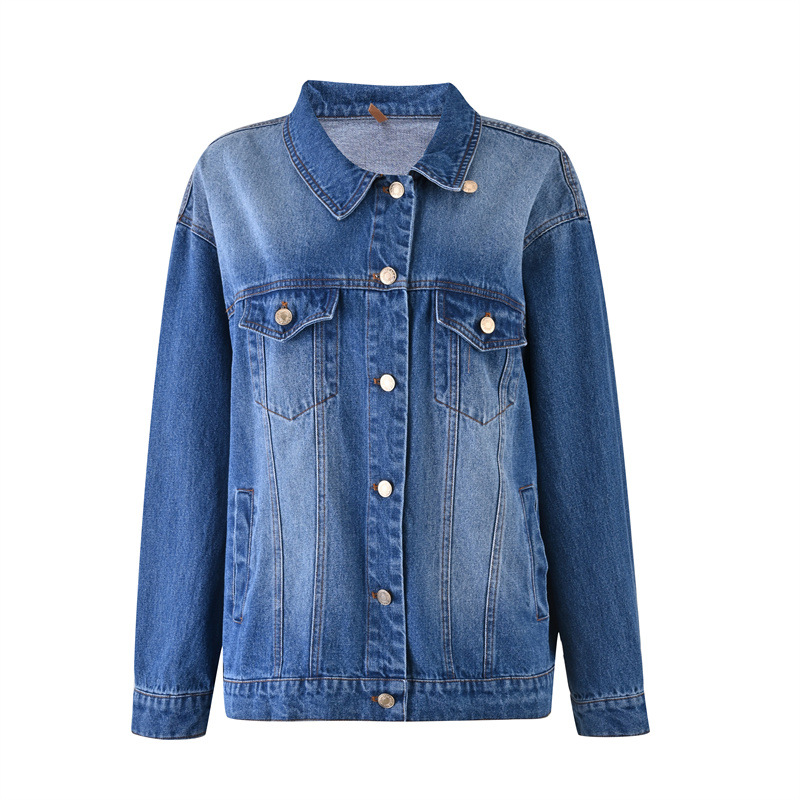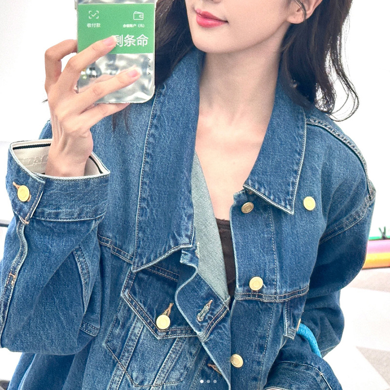 White deer same Hong Kong style retro blue Denim coat early autumn 2024 new long sleeve loose top for women L8070