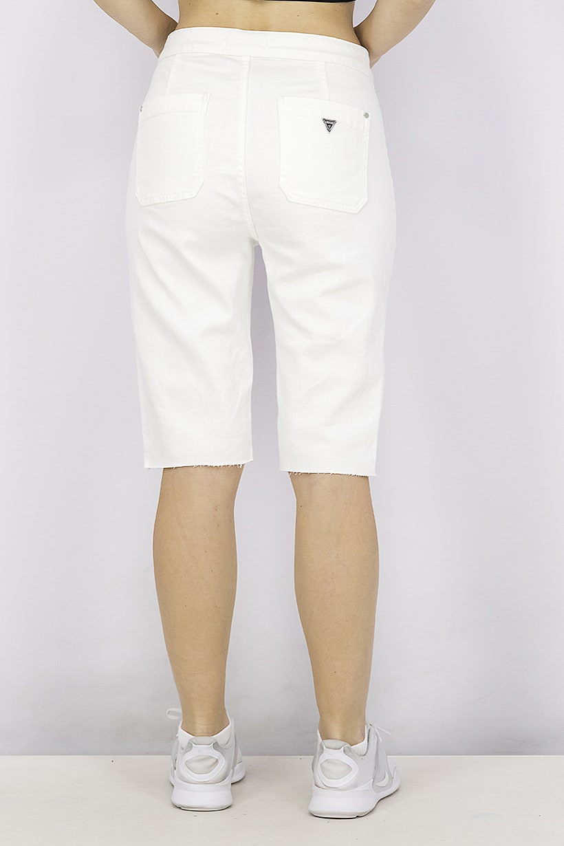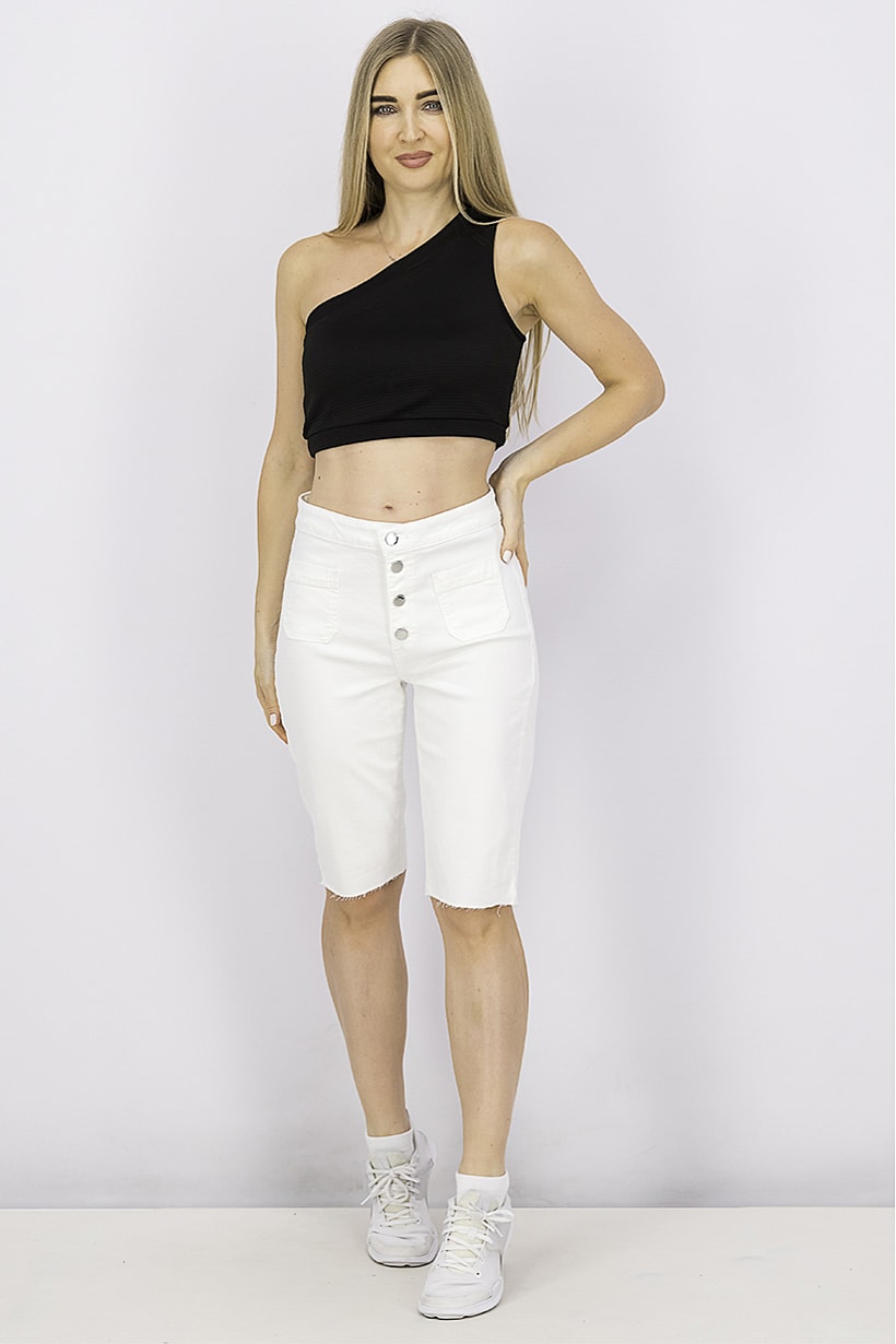 White Denim Bermuda Shorts for Women with Button and Fly.