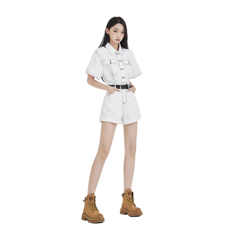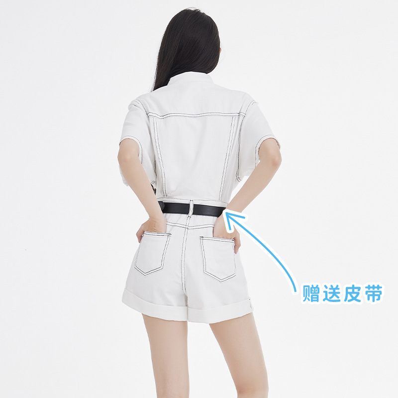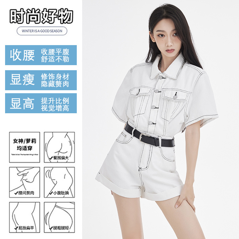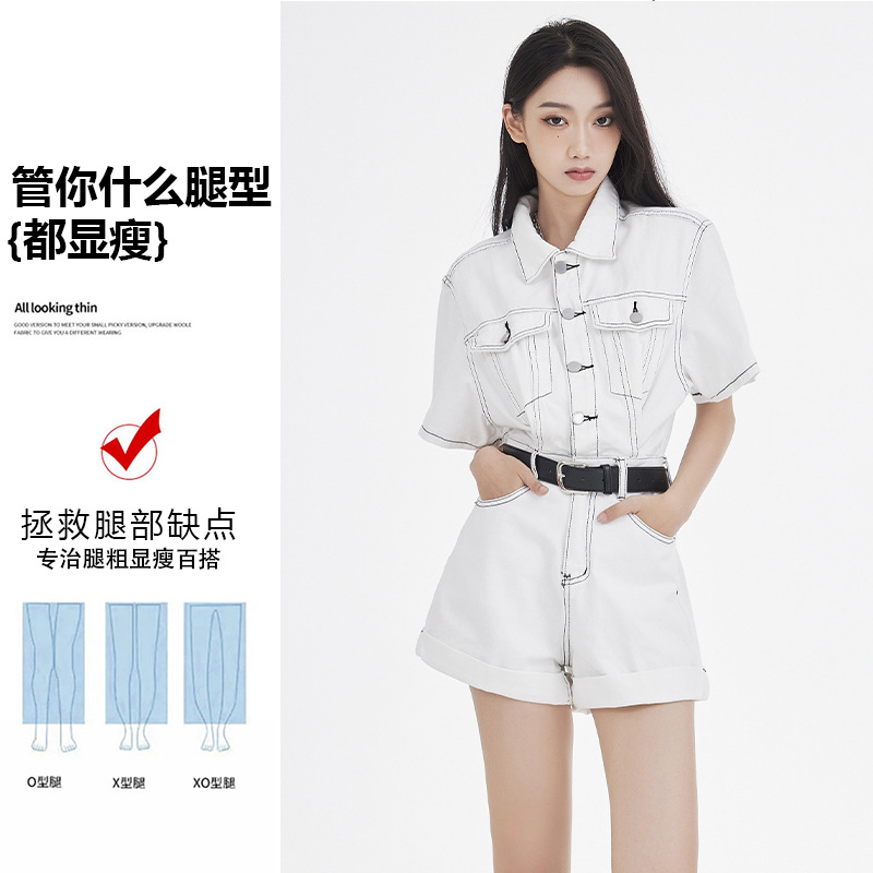 | nameOriginal | White Denim Jumpsuit Women's 2024 Korean Style Fashionable Summer Short Design Sense Loose Retro High Waist Shorts |